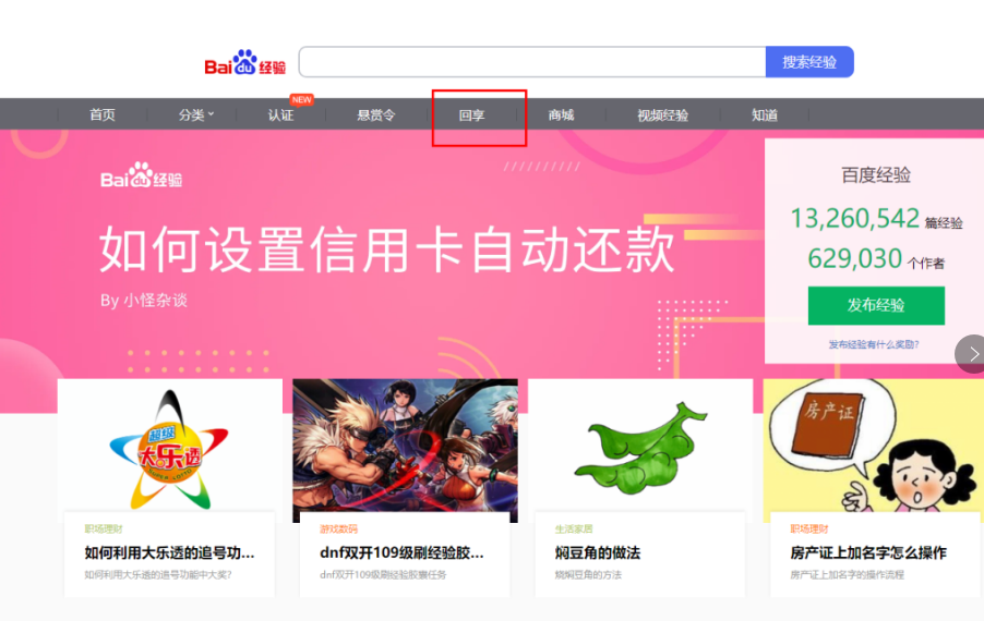1、首先,登录我们的某度经验账号,进入经验个人中心,点击灰色导航条的回享进入。