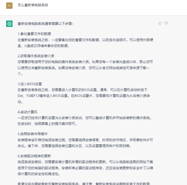 今天我也简单的咨询了chatGPT,怎么重装系统?怎么获取安装介质?有没有合适的远程协助工具推荐?chat的回答还是比较不错!