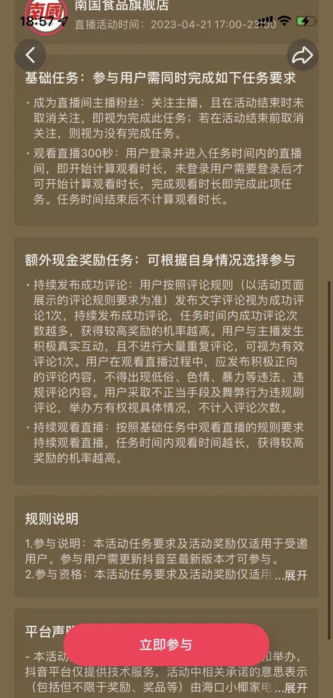 比如这个就必须要关注主播以及观看时长超过300秒,才会给你结算收益。而且观看的时间越长,和主播互动的越多,收益也会越高。