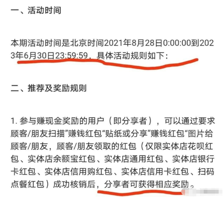 看到这里你应该就明白了,为什么这么多人在朋友圈疯狂转发了吧。因为只要有用户扫了他的支付宝红包二维码。领到了红包消费掉。分享二维码者也会获得奖励。