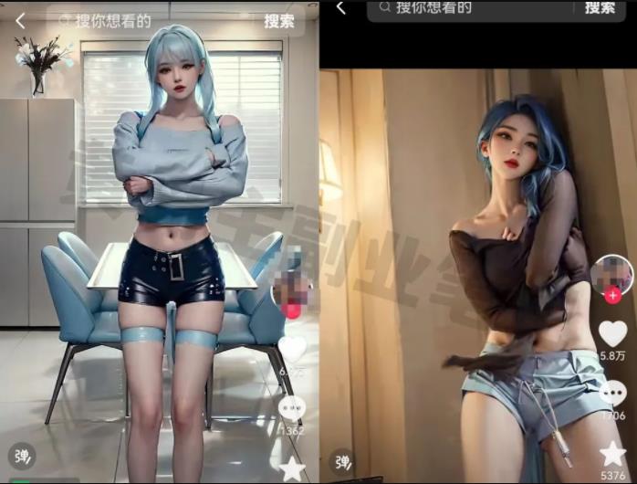 美女号一直都自带流量,因为用户群体非常庞大,而且玩法不用露脸、也不用直播,我们只需要搞定素材,然后用AI绘画的软件给它变成动漫的效果,一条视频就完成了。