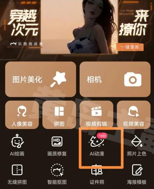 第二步、下载软件美图秀秀,打开之后软件里边有一个AI动漫的选项,点一下之后就会出现一个导入视频变身的按钮,然后点一下,导入提前准备好的视频一键生成。