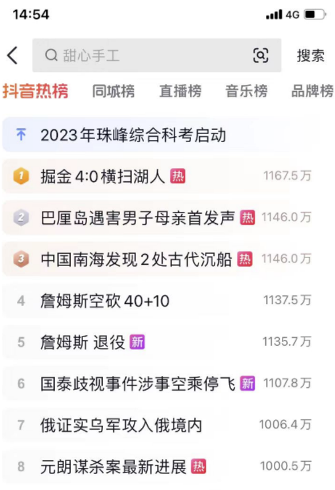 1. 抖音右上角搜索框进入后就可以看到热榜: