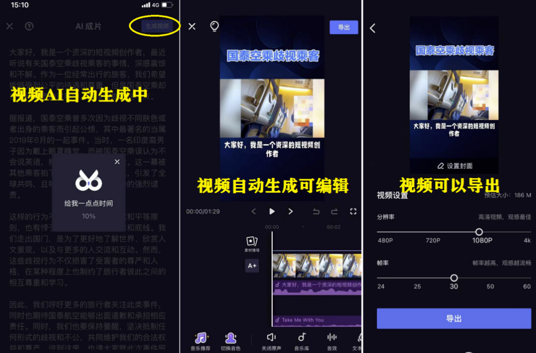 AI视频可以一键生成并导出:
