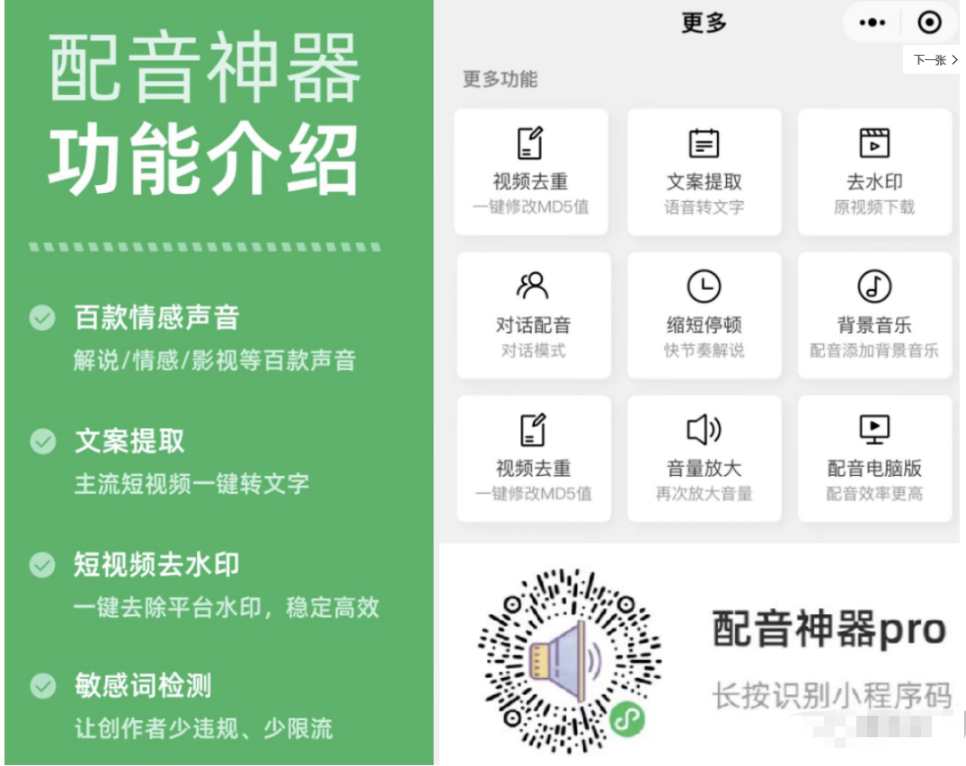 功能包括:视频去重/文案提取/去水印/配音/敏感词检查…可以说真的好用: