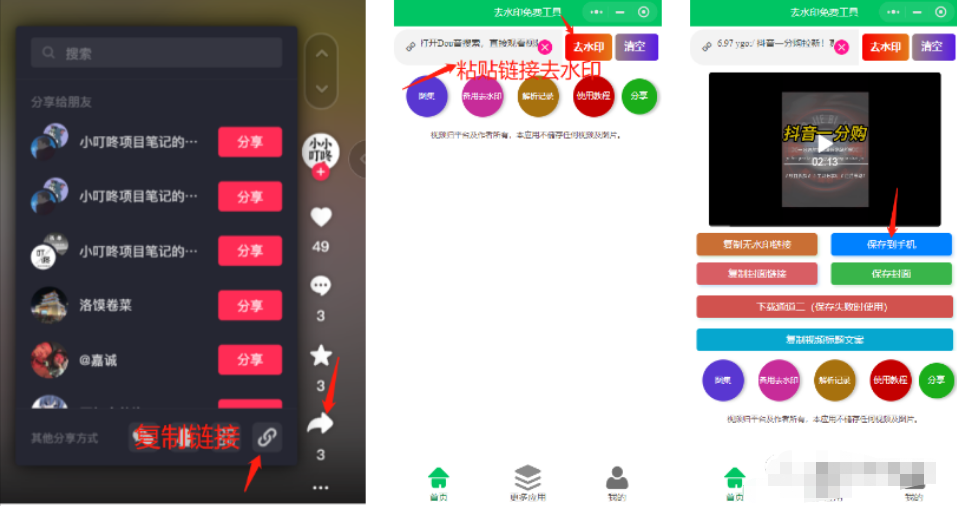 抖音快手小红书都可以!我们以抖音举例,搜索【胎教音乐】会出来很多视频,复制作品链接,在小微信的小程序里下载无水印视频保存软件,下载好后备用。