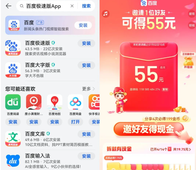 1、下载软件,在应用商城搜索百度极速版下载,下载好app后直接注册并登陆账号,打开APP,点击中间的红包图标,可以参加一些活动,主要是看视频和阅读小说的收益,来获得5000金币奖励。