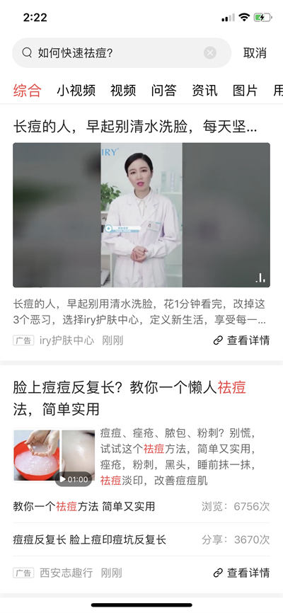 这些长尾关键词可以通过百度下拉框搜集,或是上5118提取一批下来,再丢到今日头条上搜索即可。当用户搜索这些关键词的时候,今日头条给用户展现的全部都是祛痘护肤相关的文章,这个时候你要用心翻看每一篇文章,看看结尾有没有留下微信号或是公众号?如果有的话,直接加他们的微信就可以了,如果没有,直接给他们私信发一句话:看了你的今日头条文章收获非常大,请问可以加你的微信吗?或者说可以认识你吗?之类的话术……