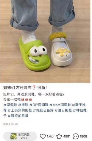 2、可借鉴②:一开始只挂图文其中一款鞋的车,用小号来个“神评”【她卖左边,结果大家都喜欢右边】,底下不少人评论这个“落差”。“萝卜青菜,各有所爱”,评论区也有不少喜欢右边款的求右边链接的,后续挂车。