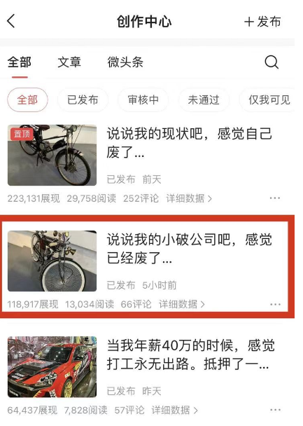 2.深入的扒玩法 扒了一下,目前他们的变现形式主要有2种 1.短信传话一次1.88,人工传话一次9.9,发图片另收费 2.广告主收益 虽然无法看到后台变现情况,但基于人性角度分析(切中客户很痛的痛点)加上他们疯狂铺号的情况来看,收益比较可观。(公众号只发了三篇文章,前两篇5月30日发送1000多观看,最后一篇6月30号发送6000多观看,一个月引流至少5000+高活性用户) 3.项目逻辑通畅 这个项目,个人认为从视频制作→公域引流到私域→变现逻辑很清晰,唯一的难点就是公众号短信系统的搭建,懂行的朋友可直接复制。 二、阅读量过万的微头条话题: 微头条好像对这种唠家常式的头条给了特别的流量。早晨发完后就忙其他事,等中午看的是已经有1万的阅读量了。