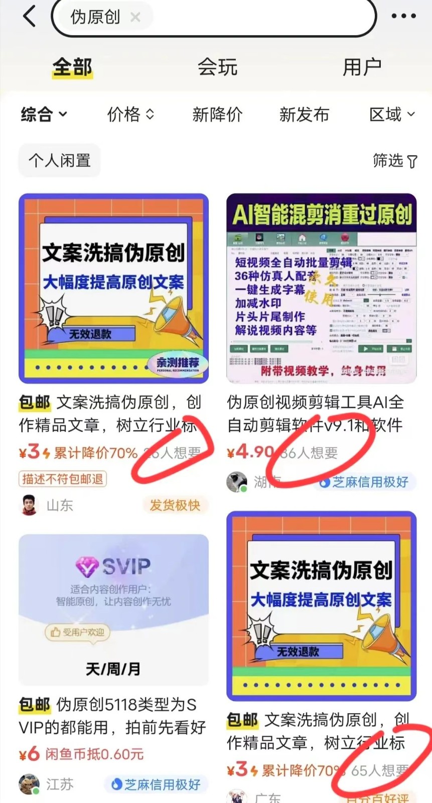 也不是叫大家去卖这个教程,只是拆解出这个案例,告诉大家虚拟教程都是可以出售的。 再例如以下这个,文案、视频伪原创工具。