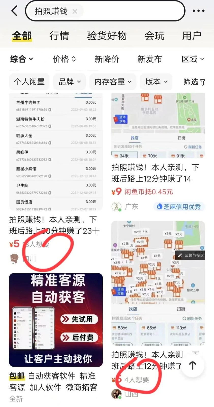 随便去搜索一个项目,需求的人都大把,并且这些项目很多都是之前唐哥免费分享的。 而且之前另外一个号也有讲过,有人包装我的文章上架到咸鱼,单价是几块钱,关键销量还不低,我很佩服这类人,把信息差能玩的这么牛。 我相信大家看完以上案例,基本上心里应该都有个底了。 项目操作流程: 这个操作流程真的没什么好讲的,但还是怕有人不知道,简单为大家讲讲吧! 1、先去开一个咸鱼店铺,这里没有任何门槛。 2、这里先给自己一个定位,想清楚卖点,然后再去搜索对标同行,先去看看他们商品图以及文案话术,然后就是上架产品,卖项目的话,这里唐哥建议大家直接模仿同行的,新人操作自己瞎编可能违规。 3、寻找合适项目上架,这里可以看看唐哥文章项目或者问唐哥(伸手党别来),或者去其他地方寻找。 4、这里大家可以批量上传,一个项目可以多上架几个,你也可以选择只上传一个,不做局限,这里唐哥要跟大家讲一下,一个店铺可以上架50个商品。 5、商品上架之后,记得每天去擦亮一下,提高曝光量。 6、当然,咸鱼币也可以用来买曝光量,获取方式也很简单,随便做几个任务即可,这里大家自行去看看。 7、以上步骤都完成之后,坐等出单即可! 项目分析: 这里建议大家把50个商品位都上传满,因为商品越多曝光量也就越高,如果想要把收益放大直接做矩阵,但是要时刻关注店铺消息,尽量做到秒回,每天都要去检查一下,把数据不高的直接下架,重新上架一个。 项目总结: 这个项目操作难度不大,但是一定要戒骄戒躁,不要心浮气躁,可能前面上架商品稍微麻烦了点,商品上架满之后,就只需等待信息,然后有消息及时回复,每天擦亮一下,清理没有流量的商品,每天花个半小时到一个小时就行了。 那些喜欢两天打鱼三天晒网的朋友还别去操作,别浪费自己的时间。 以上就是“咸鱼搬砖项目”,感兴趣的朋友可以直接去实操。