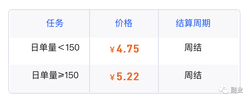 单价也还可以,拉新一个平均5块,也算挺高的,设置了一个阶梯,每天150单以上,按照5.22结算,150以下按4.75结算!